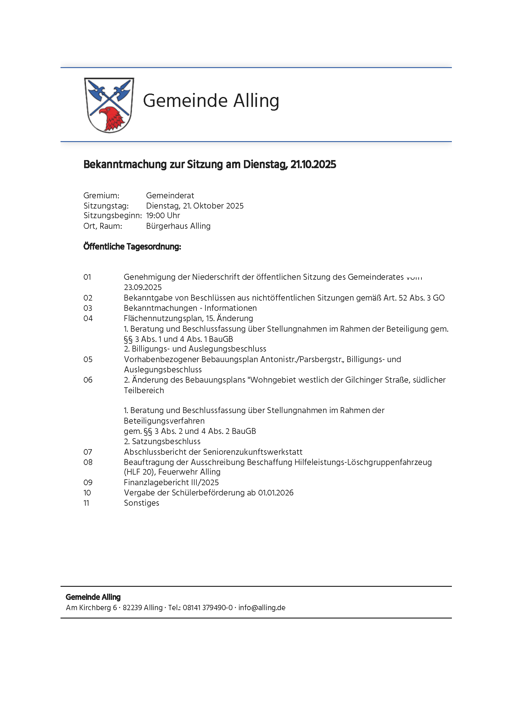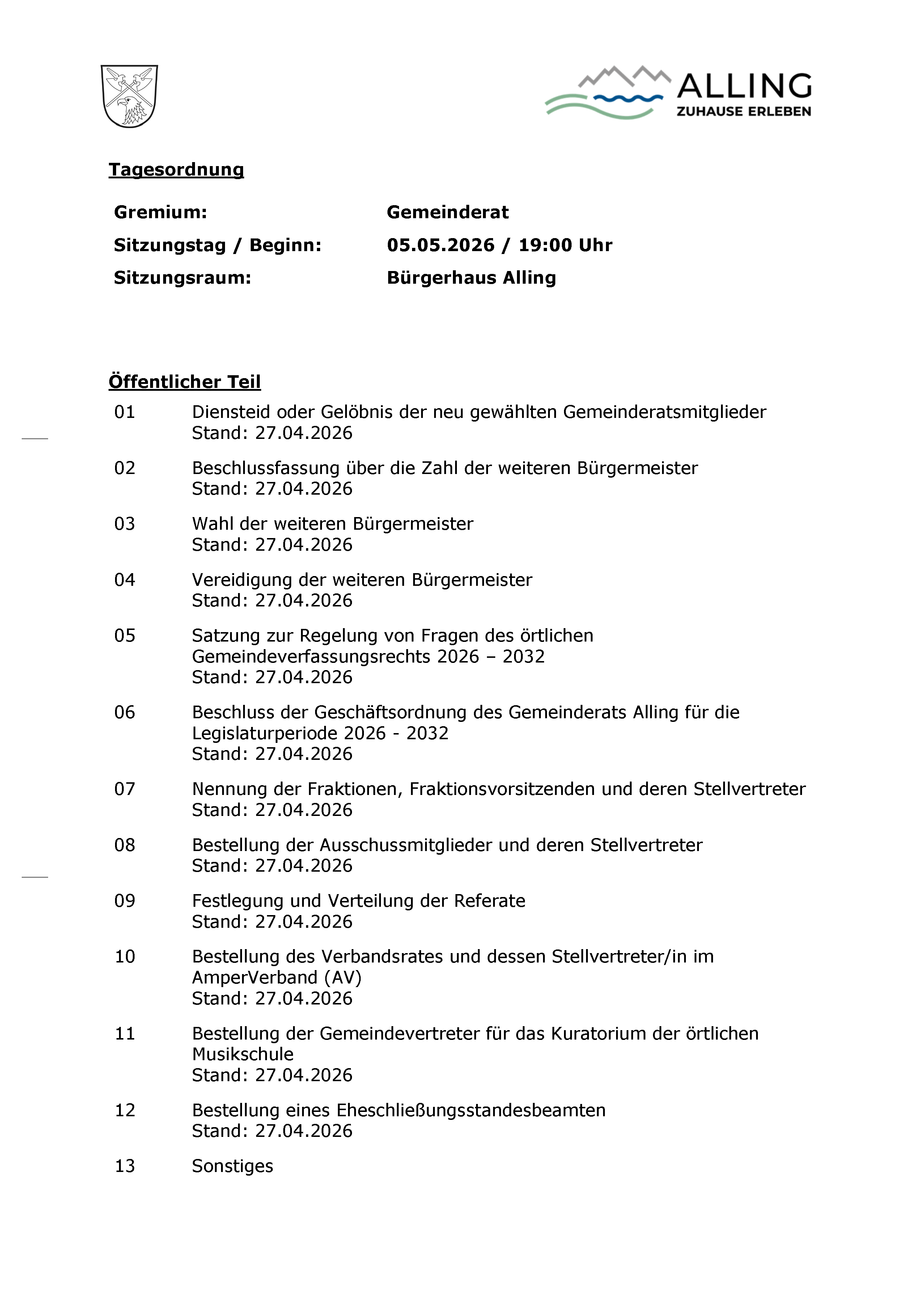 Dorfgemeinschaft Alling der FREIEN WÄHLER stellt ab 01.05.2020 den